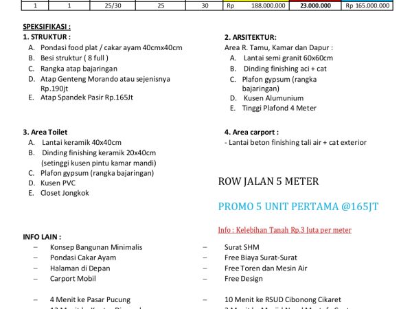 – Harga Promo 175 Juta All In, Untuk 3 pembeli pertama
